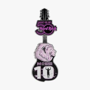 Messi Limited Edition Pin with Lion Head Guitar and Number 10 Design Live Greatness, like Messi plus, celebrate our 50th Anniversary with this Special Edition pin – featuring a Messi lion design and the number 10 wirth a guitar base and special 50th Anniversary logo below the headstock. History Lesson: Hard Rock Cafe founders Peter…