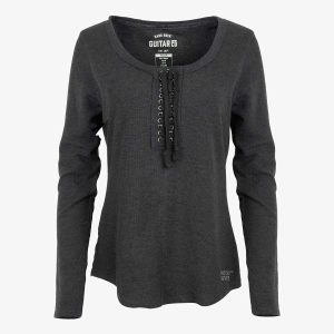 Guitar Company Ladies Fit Flames Guitar Tee in Grey Unleash your inner goddess in this vintage style tee. Featuring an engineer panel print of an exotic star flame guitar at front, treated with an optic wash for a true, worn-in look, a rib neck trim, and a soft velvet neck trim collar. Pair with your favorite…