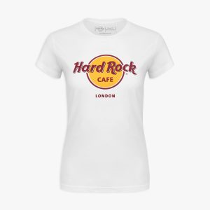 The Women’s White Classic Logo Tee reflects Hard Rock’s storied history and timeless appeal. Featuring the iconic logo on a clean white background, this tee blends comfort, style, and decades of music culture into one effortlessly versatile design.