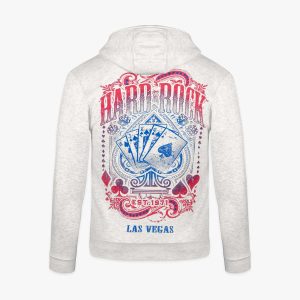 Elevate your game with the Card Spade Hoodie in oatmeal heather! This full zip hoodie boasts a casino themed graphic on the back, featuring a stylish display of playing cards and the Las Vegas city drop. This hoodie comes with cozy rib knit cuffs and waistband for a snug fit, adjustable drawstrings for the hood,…