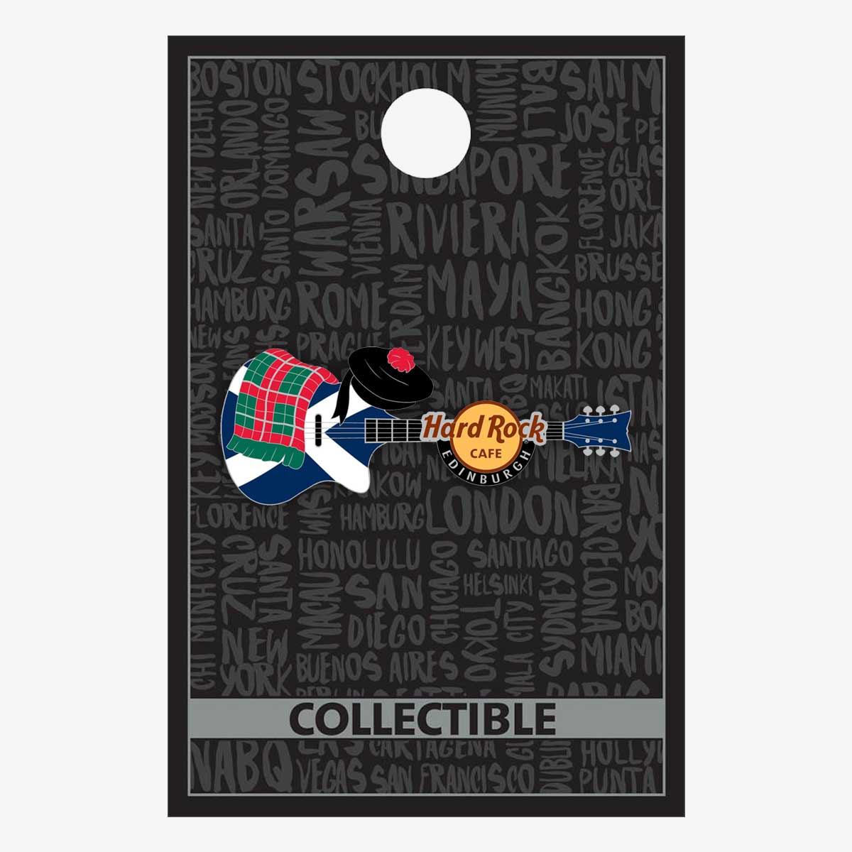 Edinburgh Flag Over Guitar Pin Exclusive design artfully craft for this location, this collectible pin is a one of a kind design perfect for commemorating your last trip to this icon location or just your love for the city. Collect, Trade & Treasure!