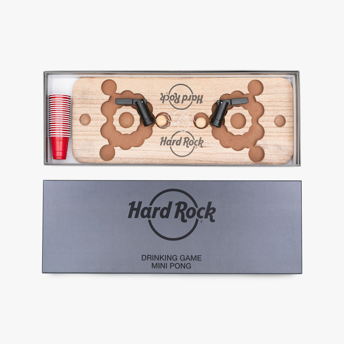 Game on, anytime, anywhere! The Hard Rock Mini Pong Drinking Game is designed for effortless fun, featuring a sleek wooden board, mini cups, and precision launchers. Whether it’s a house party, a tailgate, or a casual night in, this portable set keeps the action going. Just grab your crew, set up, and let the friendly competition begin!