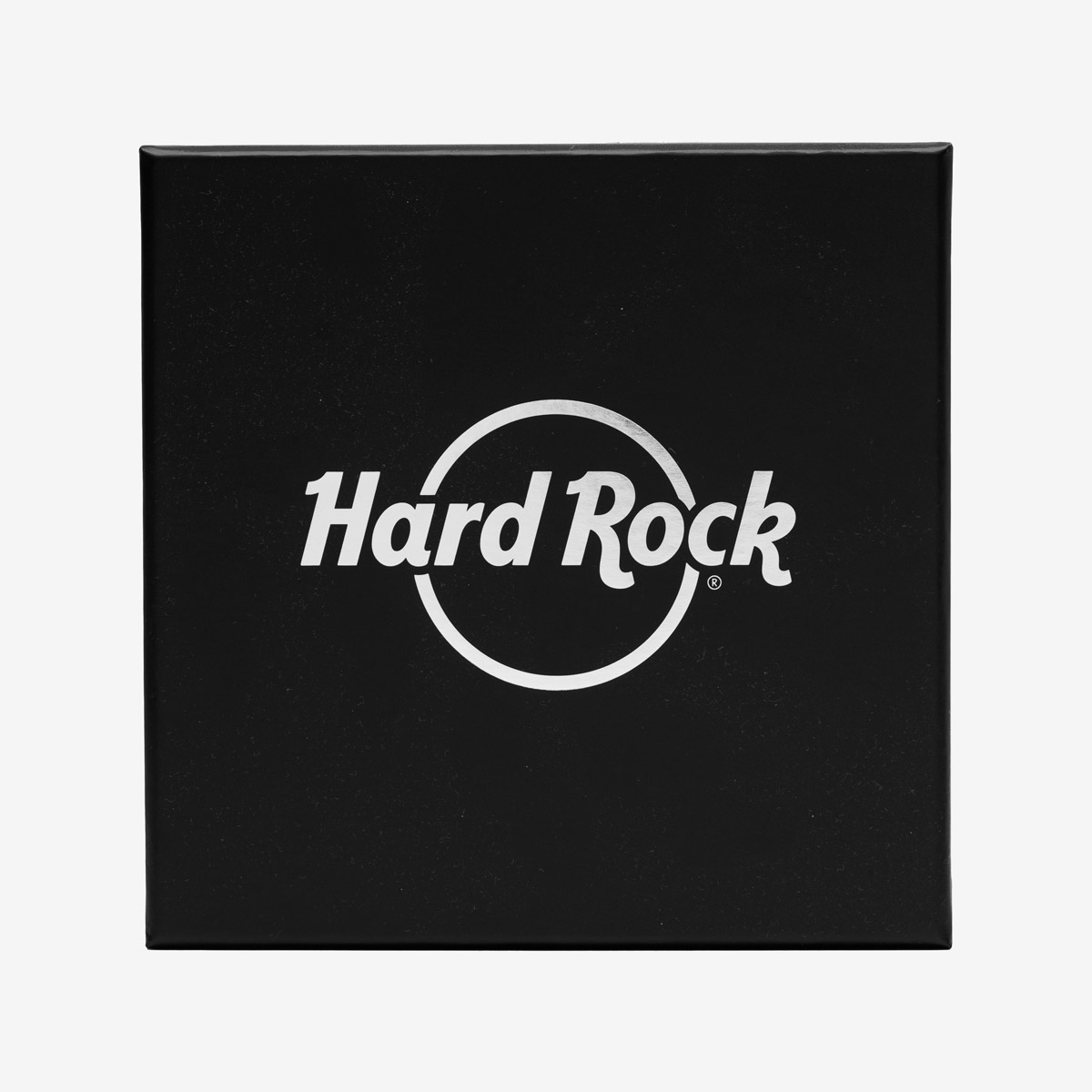 Bring a piece of Hard Rock history home with the Old Park Lane London Oval Ornament. Designed in an elegant silver-tone finish, this ornament features a raised depiction of the original Hard Rock Cafe facade that opened in 1971. The design highlights signature details like the cafe’s red window and door accents, with the founding year stamped proudly across the top. Its smooth oval frame is paired with a black hanging ribbon, adding contrast and a modern touch to a timeless piece. Whether it’s hung on a holiday tree or displayed year-round, this ornament brings London’s original café into sharp focus — honoring where it all began with a refined collectible built to last.