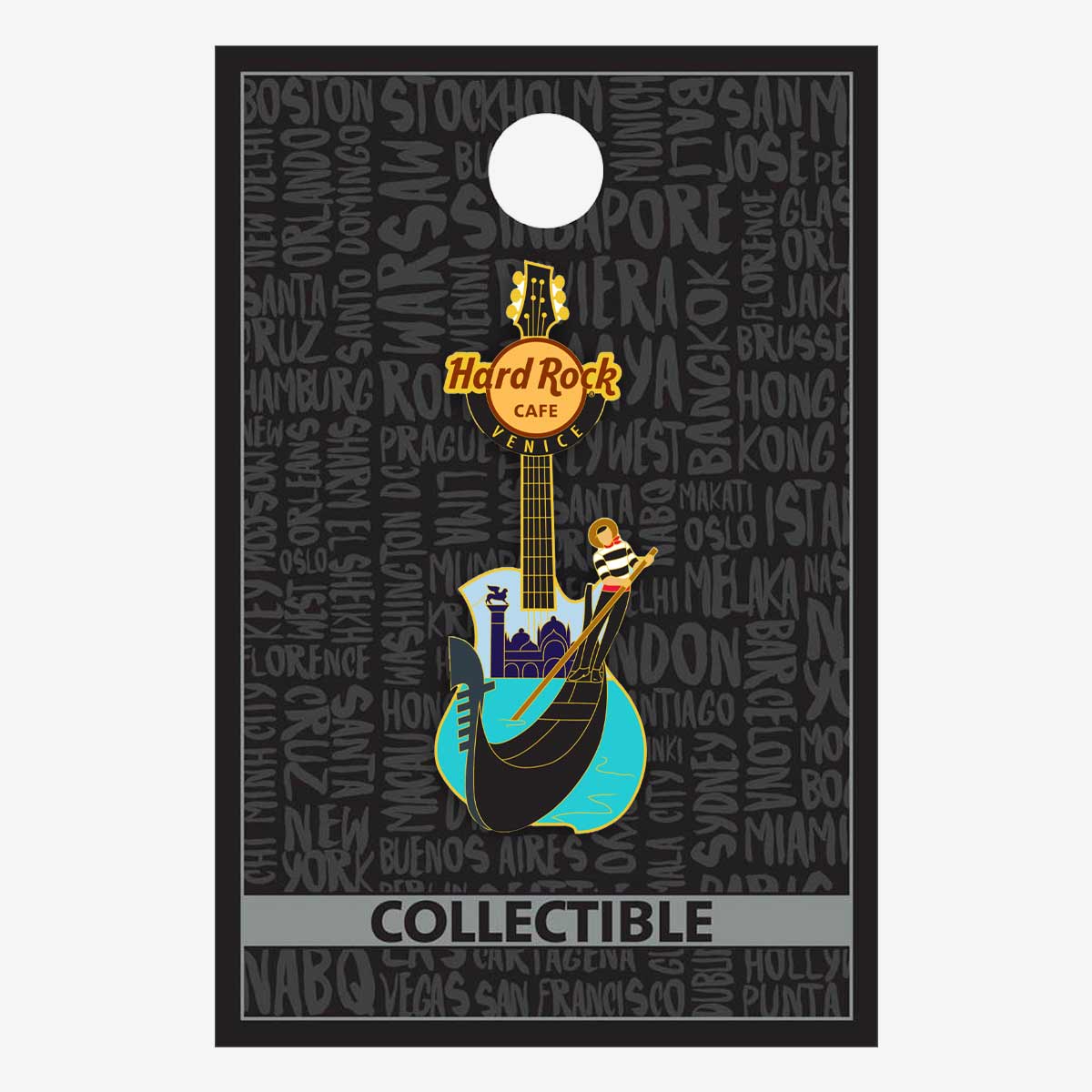 Venice Gondola Guitar Pin One of the most photographed residents of Venice there famous gondola and gondoliers. This guitar pin features both on beautiful blue waters with the city in relief in the background.